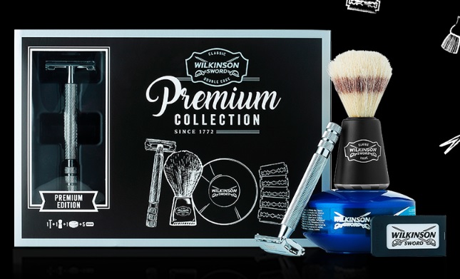 Também tinham o kit de barbear da Wilkinson (máquina Weishi + sabão + creme + pincel + lâminas) por €24,50