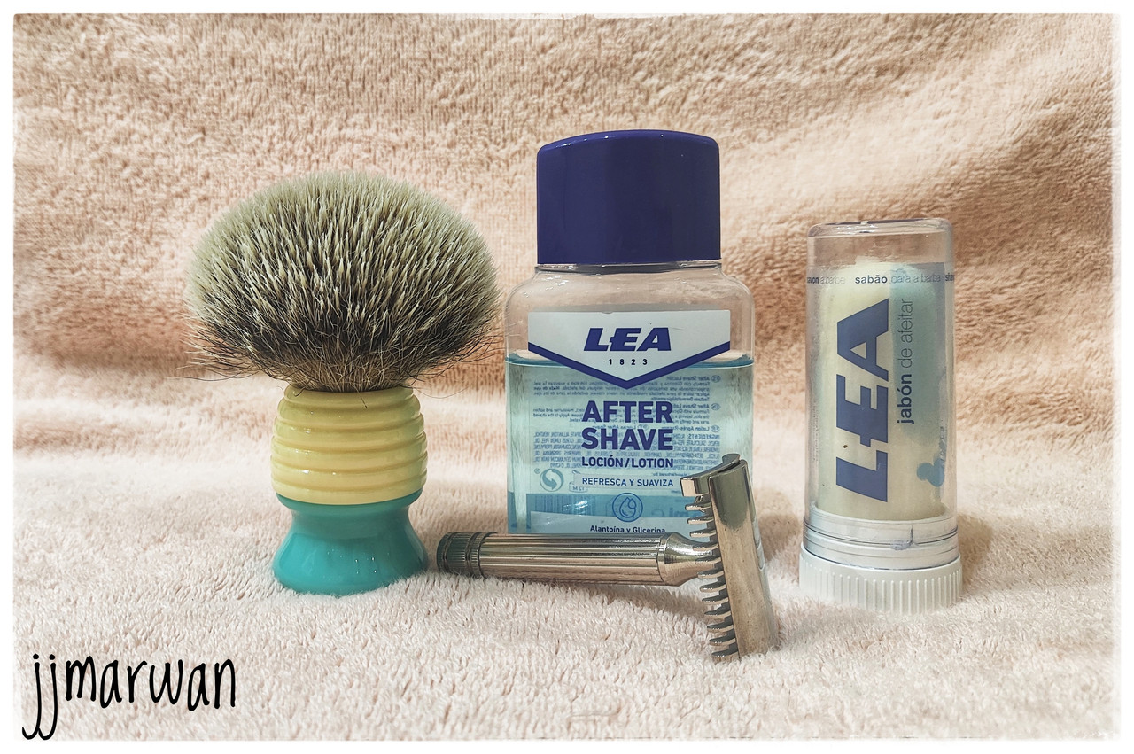 Floïd oil pre shave. Tabula Rasa, Light cream. Carlos RUFIVK, CRV, "turquoise" two bands badger & resin handle. Wacker, Chevalier. Fine, Platinum lotion aftershave. Musgo Real 3, spiced citrus, EdC.