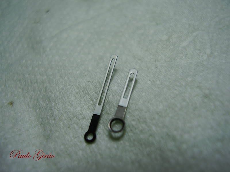 Os ponteiros também sofreram intervenção... Estavam feios e o luminescente já não funcionava.